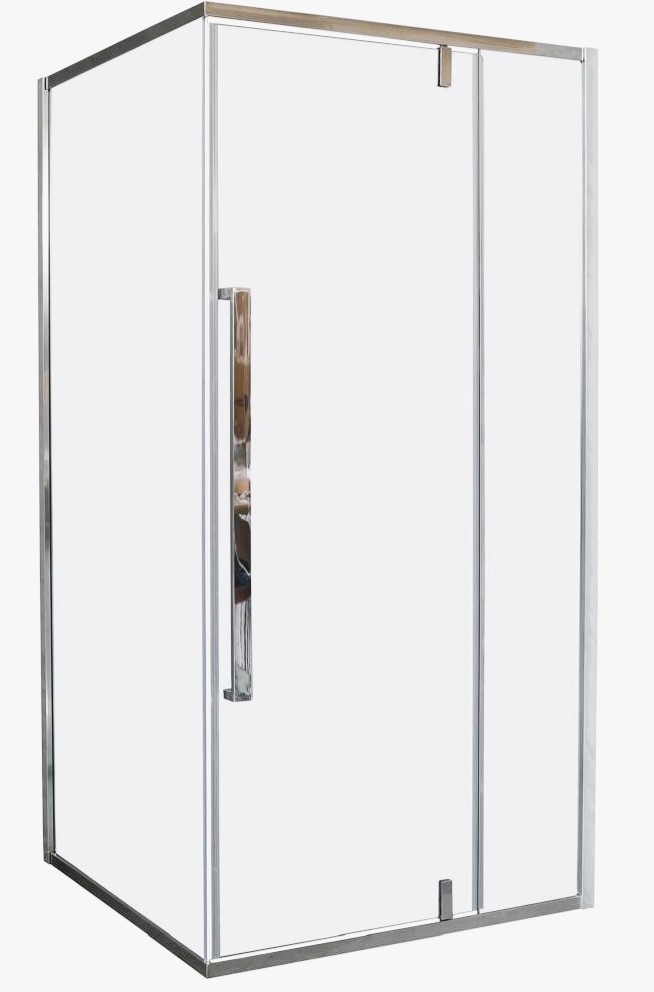 Душевое ограждение без поддона. Квадратная / прямоугольная форма. Прозрачные стёкла 6 мм, профиль хромированный алюминиевый с удлинителем, петли и ручки хромированные из нержавеющей стали, одна дверь, раздвижной механизм.