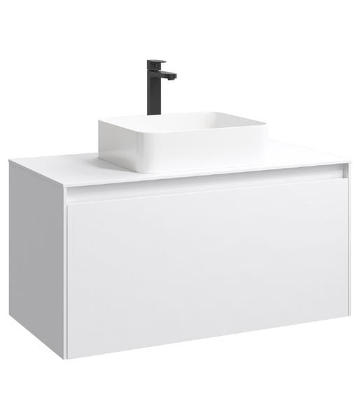 Подвесная тумба 100 см с двумя ящиками: основной и внутренний, скрытый за фасадом. Цвет белый; с умывальником