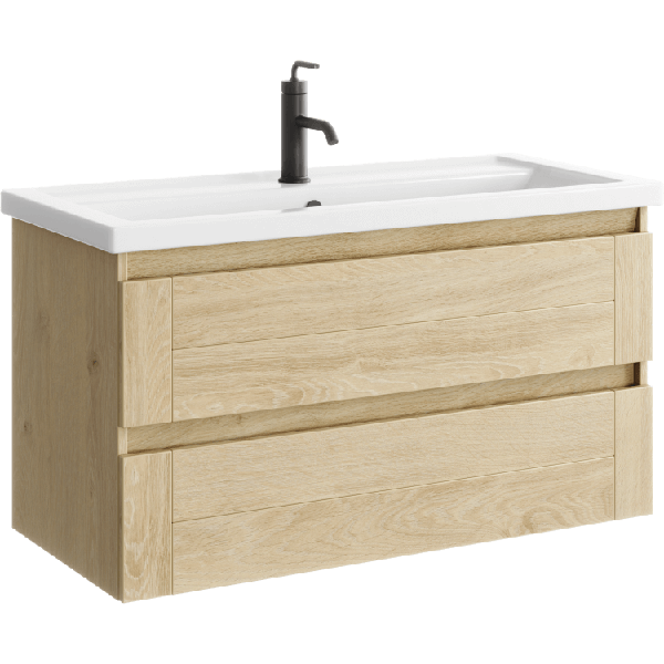 Подвесная тумба 100 см с двумя ящиками в цвете дуб давос, с умывальником