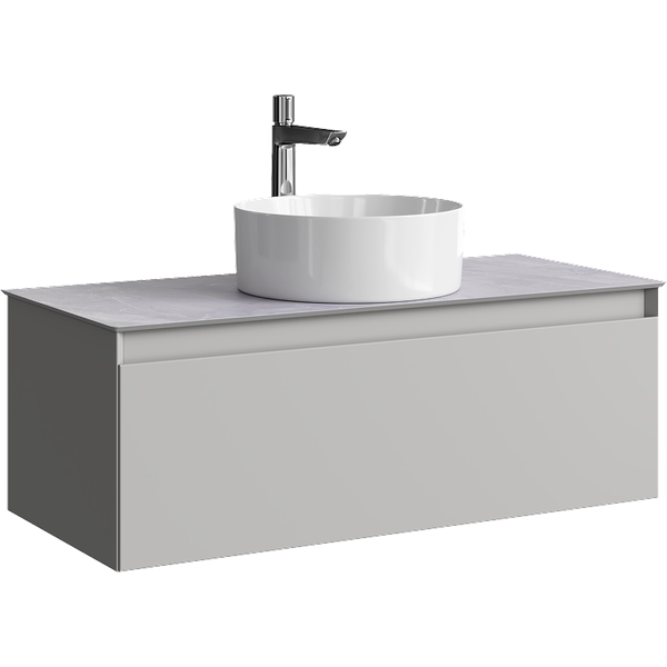 Подвесная тумба с одним ящиком 100 см, цвет серый туман со столешницей серый камень и наставным умывальником  GE01101ST+STG1014X456GS Нажмите для увеличения