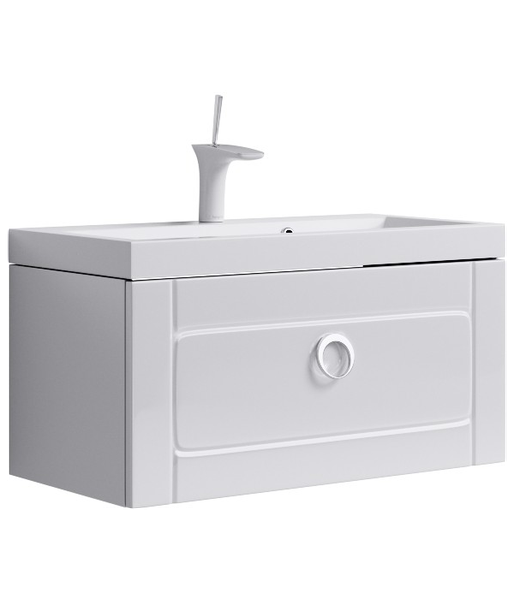 Подвесная тумба с одним ящиком в в белом глянцевом цвете с умывальником из литьевого мрамора. Inf.01.08/001 Нажмите для увеличения